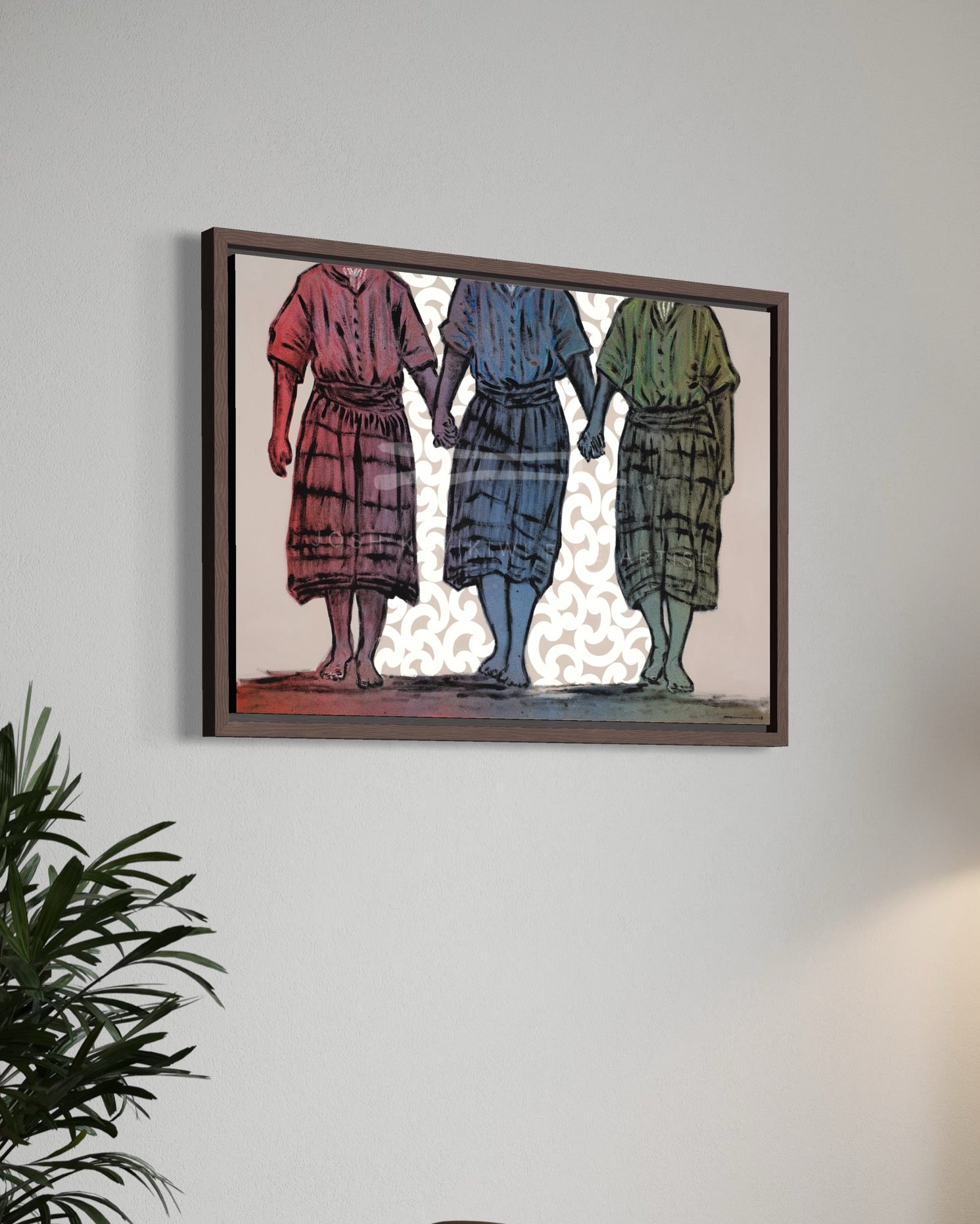 The three tamariki represent the next generation of tūpuna, yet in their stride we also recognise the familiar silhouettes of our nannies, kuia, our aunties, our sisters and mothers - echoes of those who came before. They remind us that our ancestors are not memory alone; they move within us, shaping the way we walk, the way we see, and the way we become.